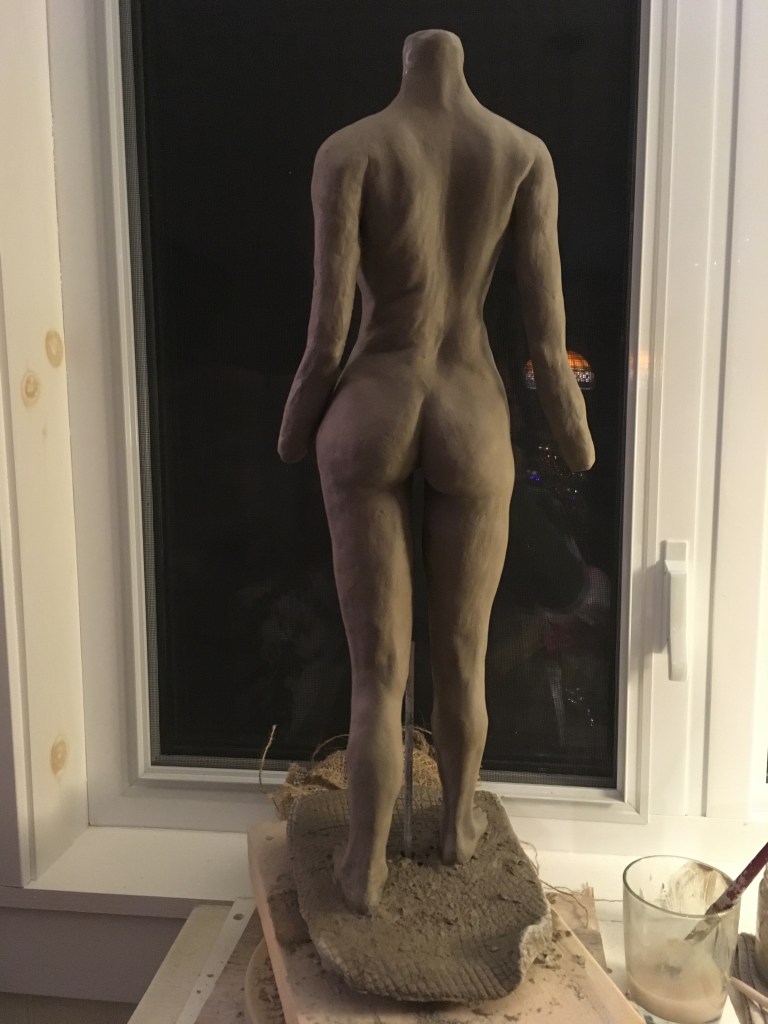 Je suis ici dans l’étude du mouvement et du corps et c’est à travers la lumière et l’ombre, son opposé, qu’évolue cette sculpture en argile.
