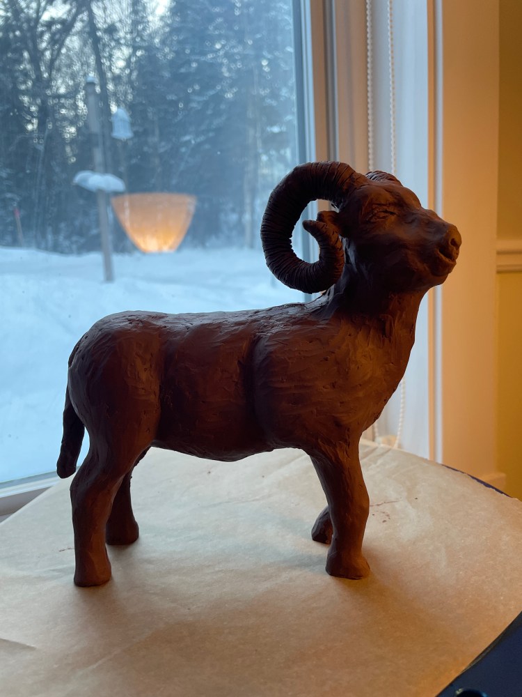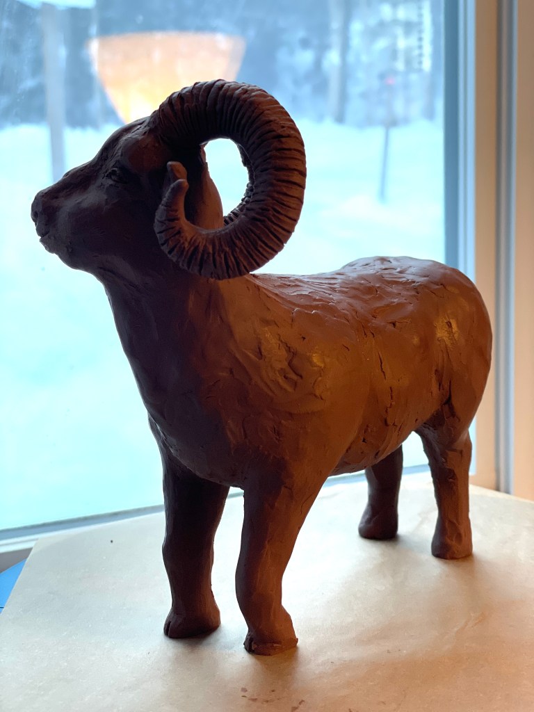 J’avais envie d’explorer le règne animal, alors évidemment mon choix s’est vite arrêté sur un bélier ! Voici donc l’avancement de mon projet de Noël 2024. Les pattes doivent être affinées, surtout les pattes avant. La tête est aussi encore un peu à travailler mais les volumes sont en place. Il manquera la fourrure également qui viendra en dernière étape.