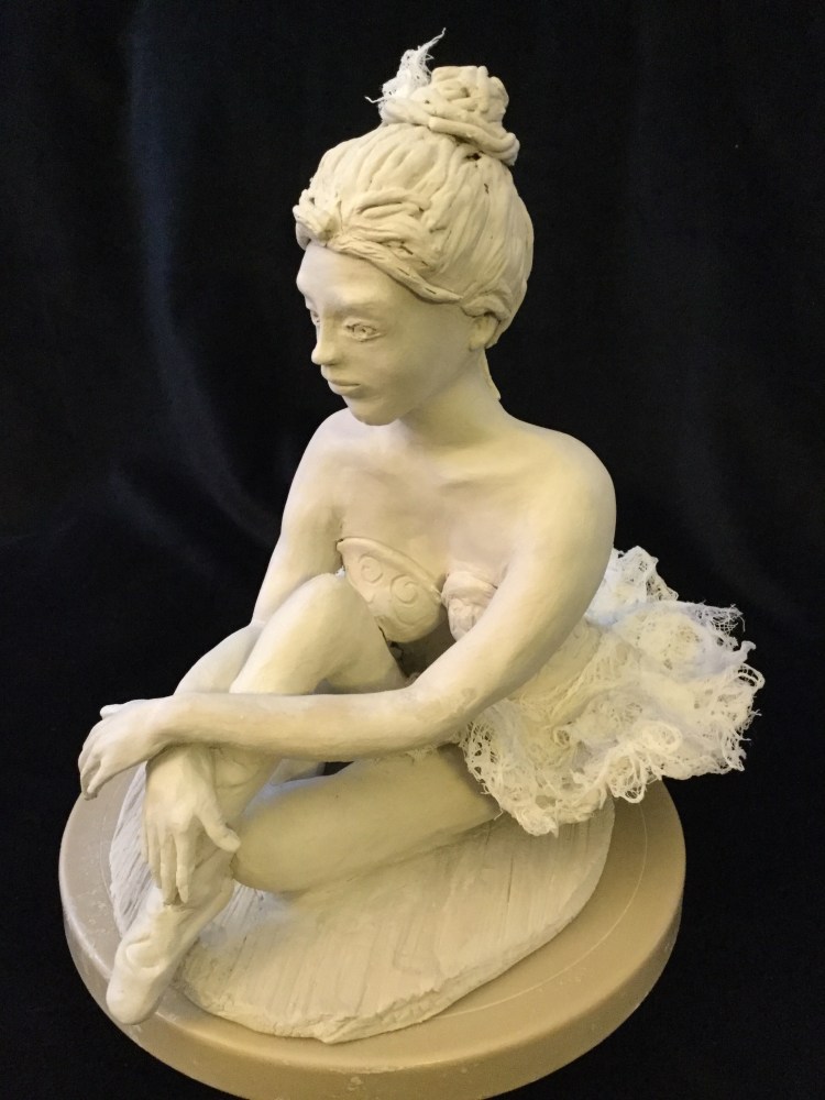 L’œuvre « La danseuse » est une sculpture en argile réalisée dans le cadre d’un cours donné par Catherine Prugnaud, qui semble nous inviter dans son atelier. L’oeuvre représentée est à l’échelle 1:4 par rapport à la taille humaine. La pièce a été réalisée en 2020 au début de la pandémie, à un moment où le temps nous était donné pour se connecter à soi.