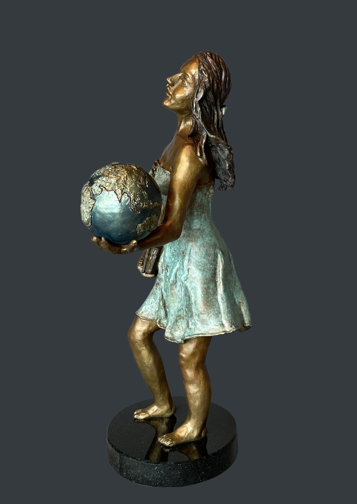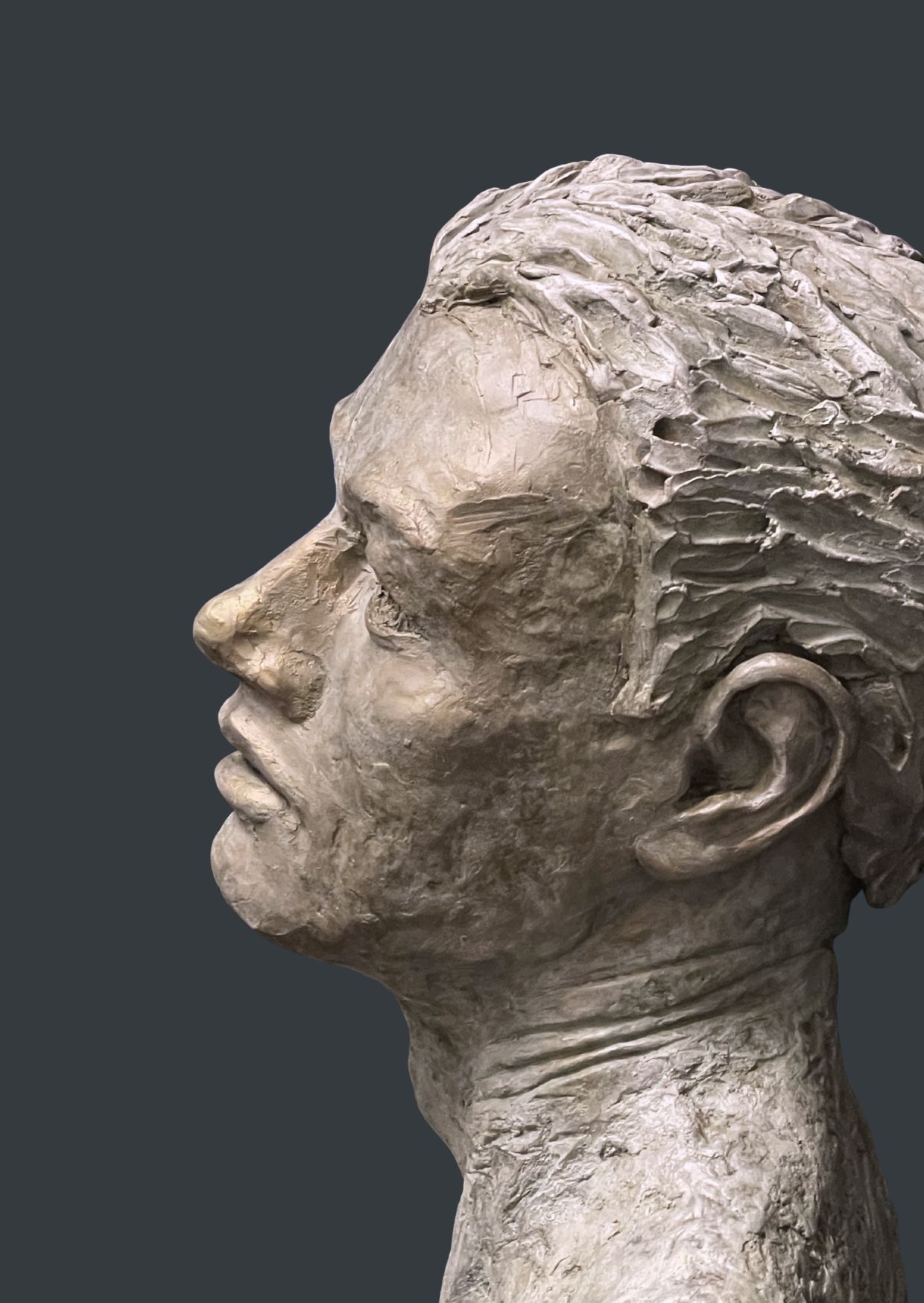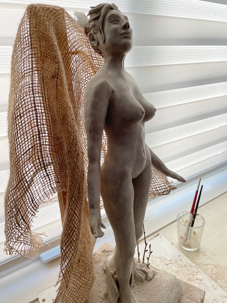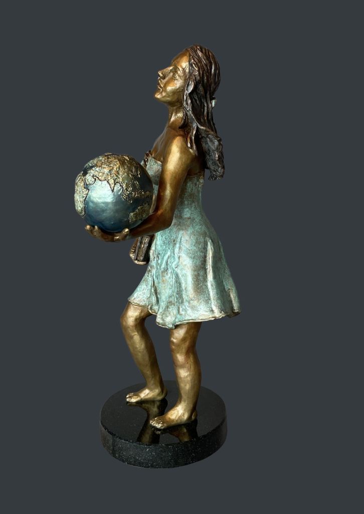 Cette pièce a été créée au printemps de 2025, à partir d’un modelage en argile. Bien que classique par le détail et le réalisme du modèle, cette œuvre demeure contemporaine par la texture, le volume et le thème de l’oeuvre, ancré dans l’aspiration à un monde meilleur.