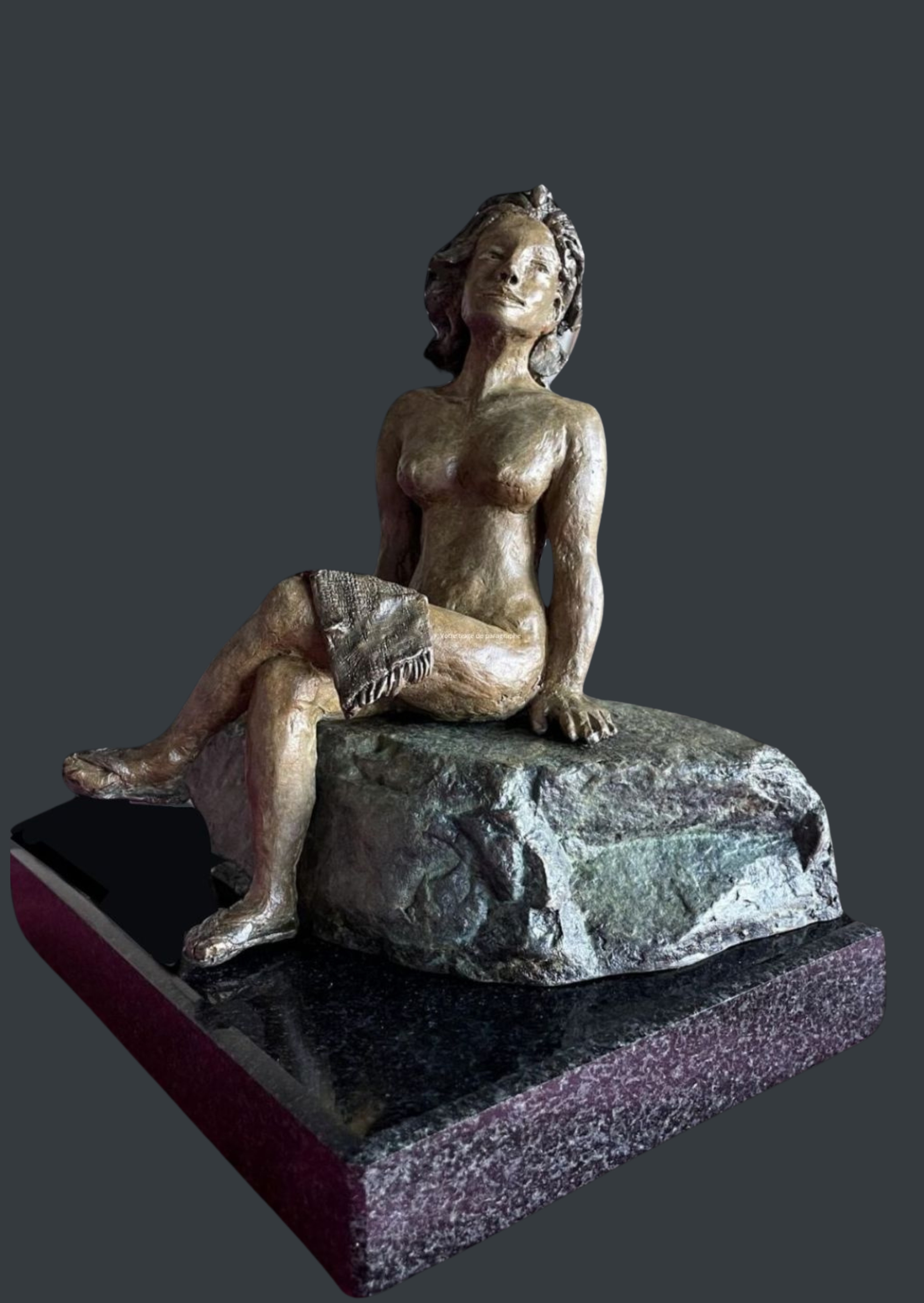 L’oeuvre est maintenant immortalisée en bronze, ce qui ajoute une dimension intemporelle à ce moment de plénitude.